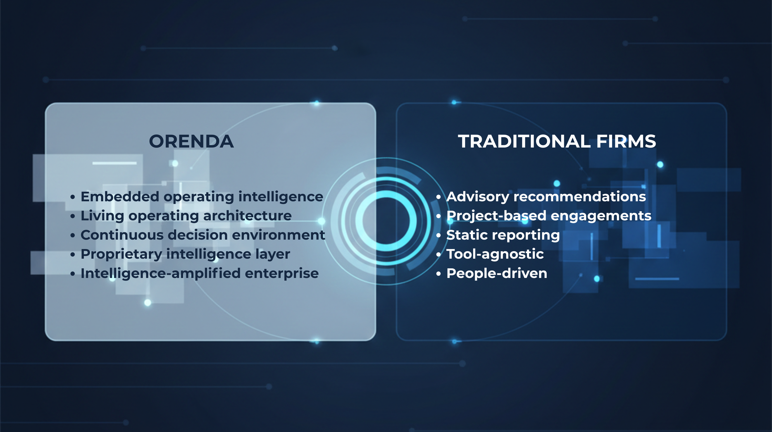 Orenda designs and installs Operating Intelligence (OQ) a live executive decision system that shows how your enterprise actually operates, where value is created and where margin is leaking.